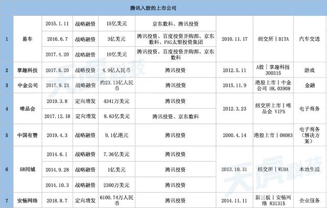 美国网约车市场的两大巨头,Uber、Lyft,也获得过腾讯投资;易鑫集团、灿谷则是专注汽车金融业务的企业,腾讯也先后有过投资;四维图新在2010年登陆新三板,是一家数字地图内容提供商,腾讯也先后两次进行战略融资。