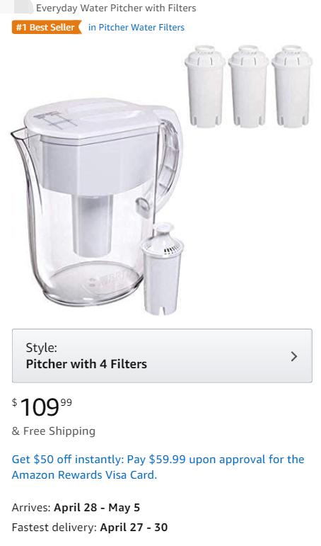 这款产品本来是一壶加一滤芯的组合,过往的销量也非常不错,在4月13日上架了一个净水壶和四个滤芯的新组合子Asin,目前这个子Asin还没有任何的Review,已做到Pitcher Water Filters小类的Best Seller,同时也是另一个小类目Best Sellers榜单的第3位。