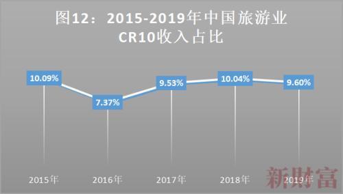 旅游是一个综合性产业,要素包括食、住、行、游、购、娱等,上游是交通、住宿、景点等资源端,中游渠道端包括传统线下、新兴线上服务商,下游由多种类型的消费者组成的消费端(图11)。正是因为产业要素众多,在国内,旅游业集中度非常低。疫情下,中小企业经过洗牌,行业龙头逆势购买资产,也带来了行业集中度提高的机会。