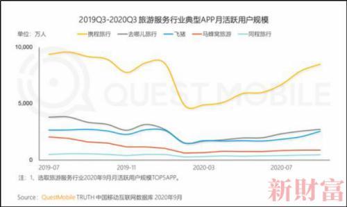 图14:2019Q3-2020Q3旅游服务业典型APP月活跃用户规模